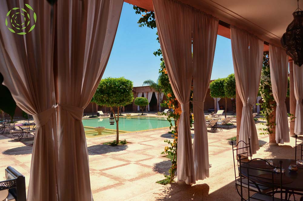 breakfast is composed of: Squeezed orange juice, Mint tea, Coffee, Milk chocolate, Milk, Toast, Moroccan pancakes: Msem'n and Beghrir, Butter, Jam, Honey.